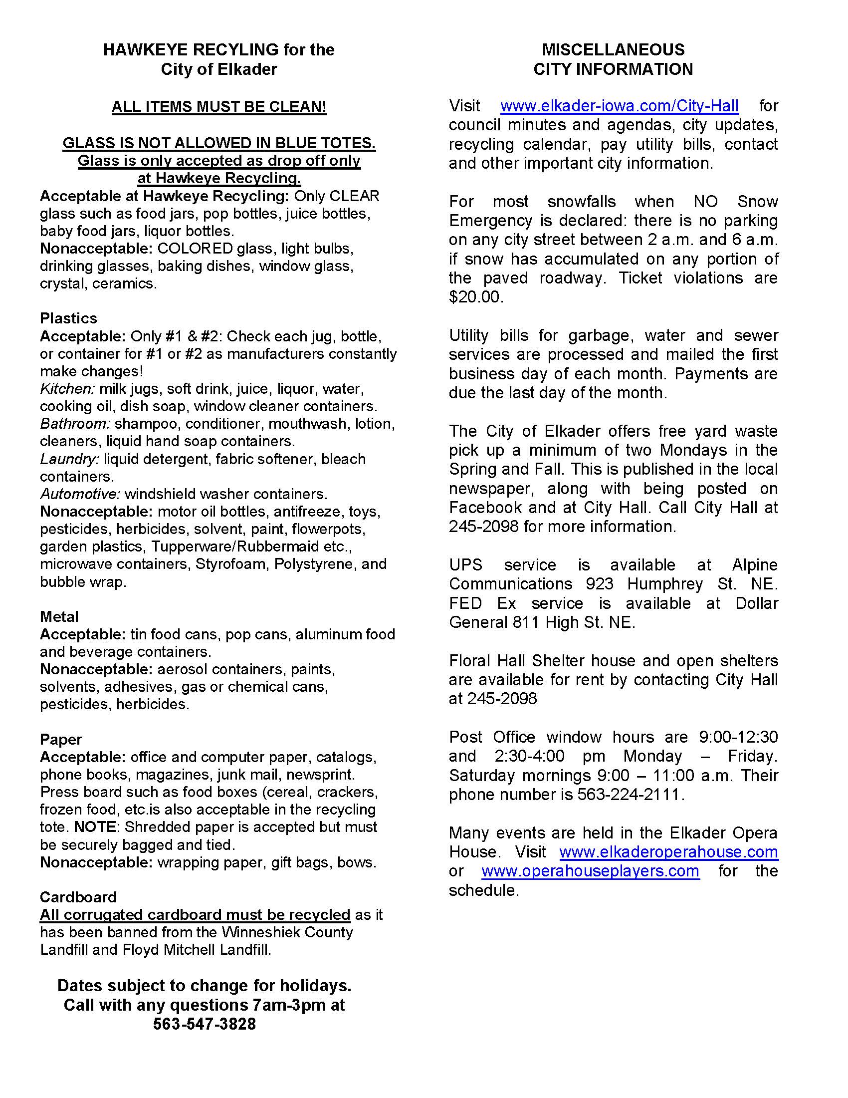 The 2026 recycling calendar is available with helpful information on what can be recycled, how to dispose of big items and the back side of the calendar has a few general reminders.