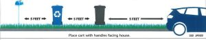 - Totes for the storage of refuse awaiting collection shall be placed curbside, with the front of the tote, where the lid of the tote opens, facing towards the street/collection point.