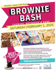Join us February 1st for our 6th Annual Brownie Bash! Participating businesses will have a sample of their favorite brownie, cookie, bar, or treat available. They may even have a copy of their recipe for you to take! Shop downtown and beat the winter blues! Check out all of our participating businesses: